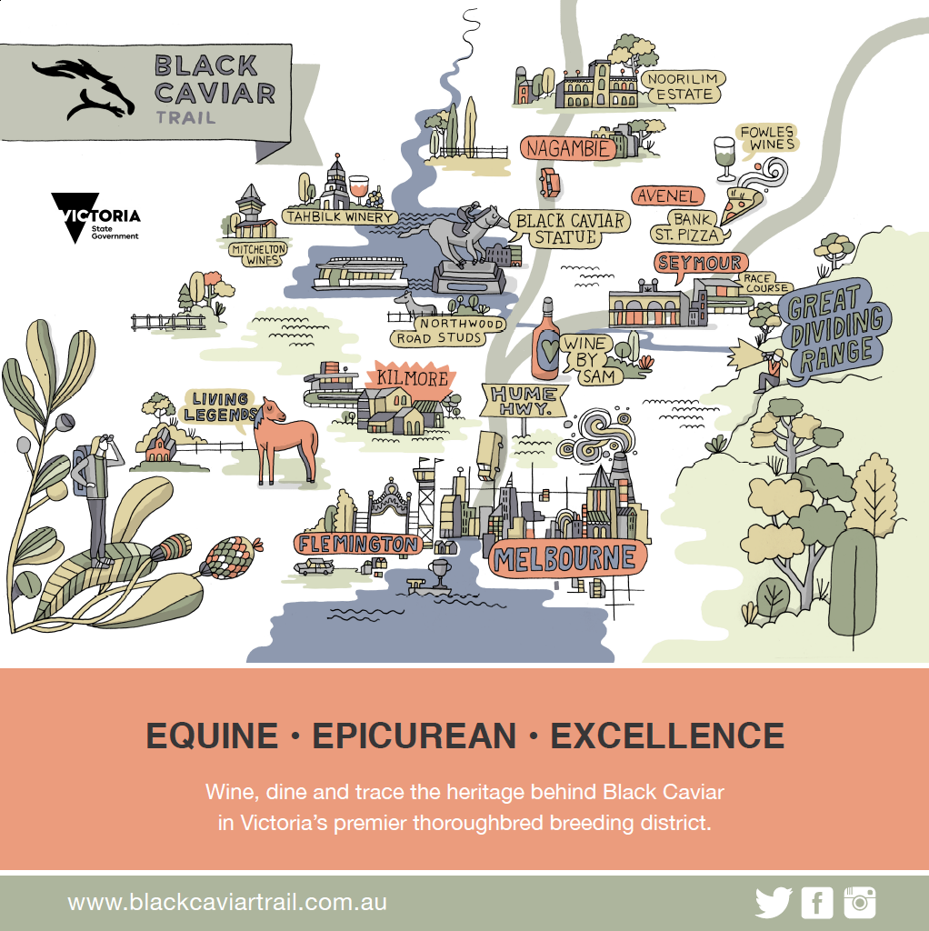The State Government, in conjunction with Nagambie Lakes Tourism and Commerce, has recently launched the Black Caviar Trail which aims to connect regional Victoria's equine industry with a self-guided trail that tells the stories that have shaped the thoroughbred industry.