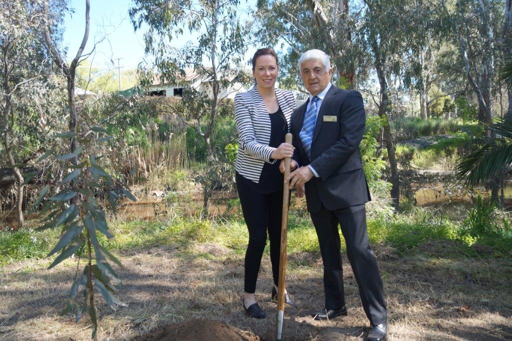 Photo: Member for Northern Victoria Jaclyn Symes and Seven Creeks Ward Councillor John Mason planting a Separation Tree in the Seven Creeks Park.